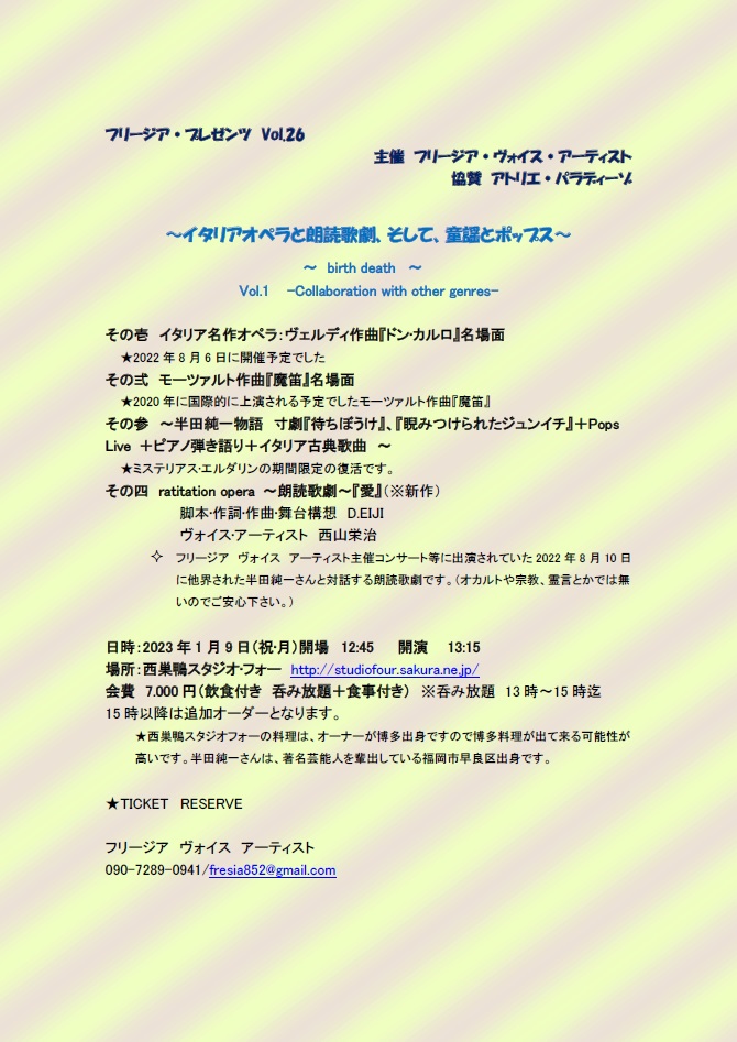 2023年1月9日(祝)昼過ぎにコンサートです。