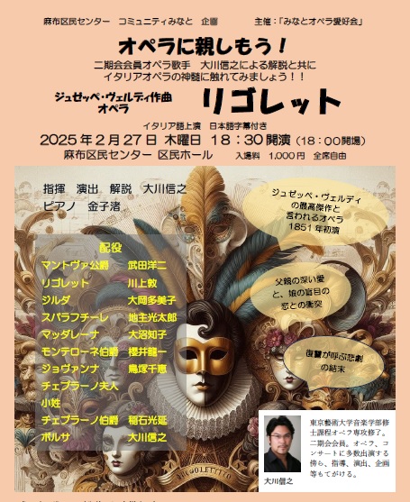 イタリア人ローシーが私財を投じ田谷力三をデビューさせた「赤坂オペラ」 復活公演です。